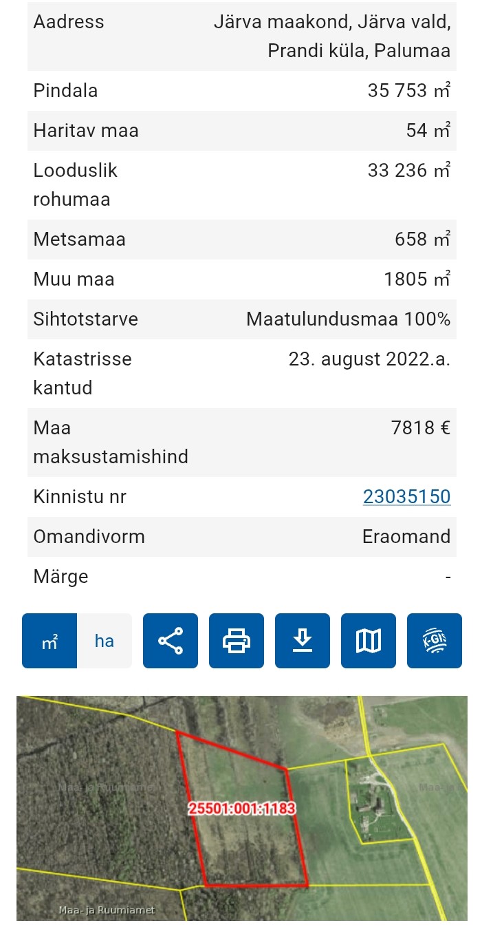 Oksjoni objekti ei ole arestitud, selle suhtes ei ole vaidlusi, seda ei ole koormatud piiratud asjaõigustega ja muude kolmandate isikute õigustega, sealhulgas kinnistusraamatusse mittesissekandekohustuslike kolmandate isikute õigustega nagu näiteks kasvava metsa raieõiguse müügileping, üüri-, rendi- või muud kasutuslepingud